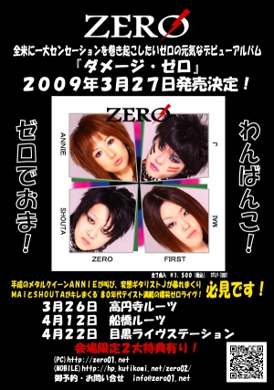 2009年3月27日発売 洋題 ZERO FIRST 邦題 ダメージ・ゼロ 全7曲入 ¥1,500(税込) STLY-1001 発売元 SHOWTIME LABEL